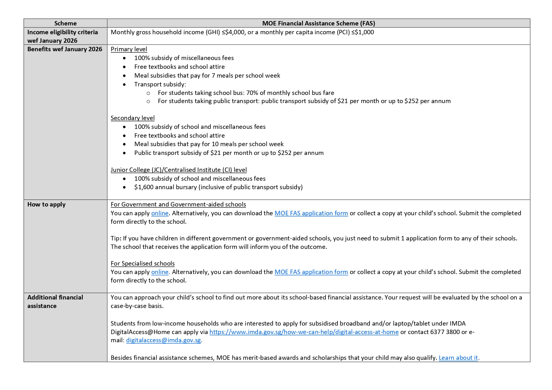 Please note that there are changes to MOE Financial Assistance Scheme.